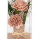 Creat din flori uscate atent selecționate, acest aranjament impresionează prin simplitate, armonie cromatică și prezentare premium. Nuanțele calde de roz și verde natural sunt completate de textura rustică a suportului din iută, oferind un aspect elegant și autentic.