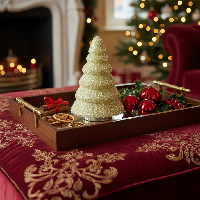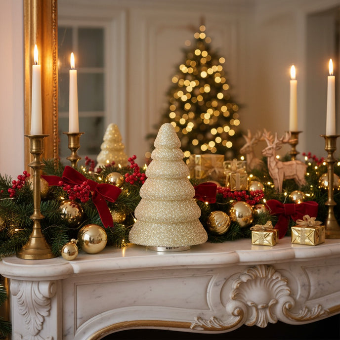 Realizat din materiale de calitate, acest brad decorativ cu finisaj sclipitor impresionează prin textura sa delicată, ce imită aspectul de gheață și strălucirea fulgilor de zăpadă. Paietele argintii creează reflexii subtile, perfecte pentru iluminarea decorurilor de sărbători.