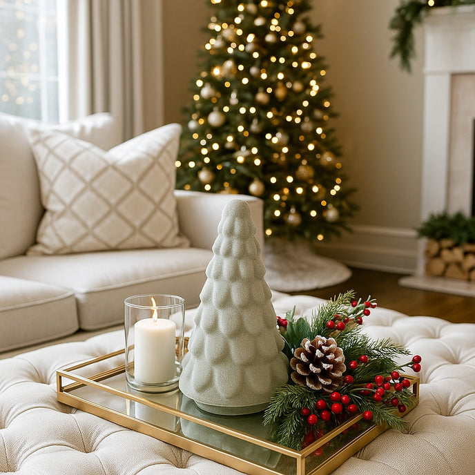 Realizat din materiale de calitate, bradul are o suprafață catifelată la atingere, ce adaugă profunzime și finețe decorului. Este o piesă versatilă, ideală pentru a fi amplasată pe o comodă, masă festivă, raft sau în aranjamente tematice de Crăciun.
