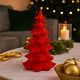 Adaugă acest brad de catifea roșu în centrul mesei de Crăciun, lângă șemineu sau pe un raft decorativ.
