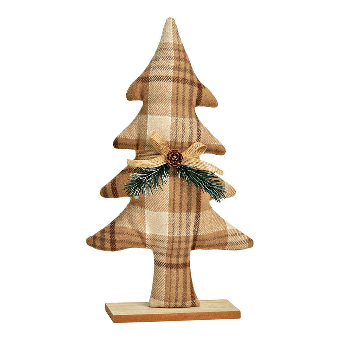 Creează o atmosferă caldă și naturală în casa ta cu acest brad decorativ textil de Crăciun cu model în carouri bej și maro. Realizat cu atenție la detalii, brăduțul este accesorizat cu o fundiță, o crenguță artificială de brad și un mic con de brad, oferind un aer autentic și rafinat decorului tău de Crăciun.