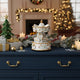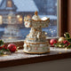 Mecanismul muzical acționat manual pune în mișcare întreaga piesă, care se rotește grațios în timp ce răsună o melodie de Crăciun clasică.