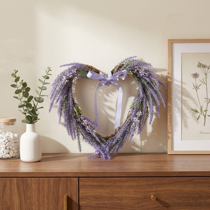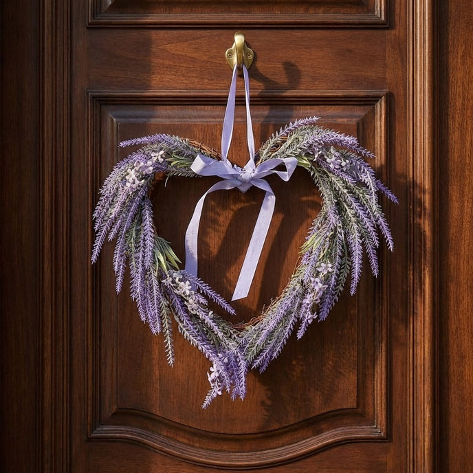 Transformă orice perete sau ușă într-un colț de liniște cu această coroniță în formă de inimă din Colecția de Primăvară Ornament24. Această piesă delicată îmbină simbolismul iubirii cu prospețimea lavandei, oferind un decor atemporal care emană calm și rafinament.
