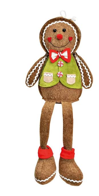 Confecționat din textil moale, omulețul este îmbrăcat într-o vestă verde decorată cu acadele, papion roșu și cizme asortate. Texturile calde și culorile vibrante transformă orice decor într-un spațiu plin de veselie și farmec.