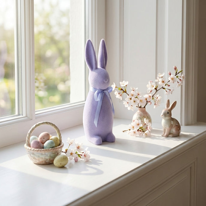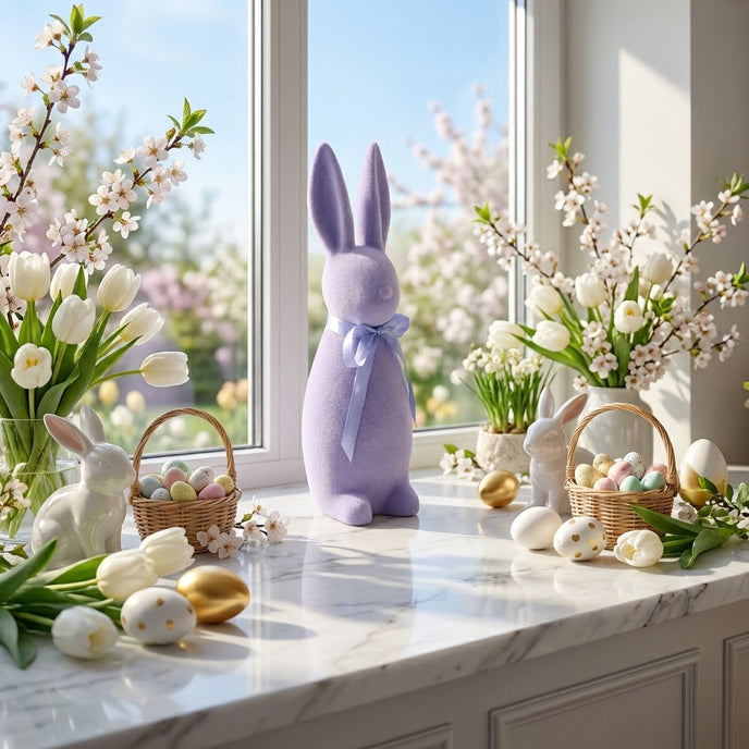 Movul liliac este o nuanță care inspiră prospețime și inovație, transformând această figurină într-un cadou de Paște memorabil pentru cei dragi.