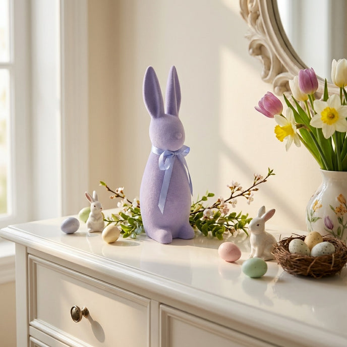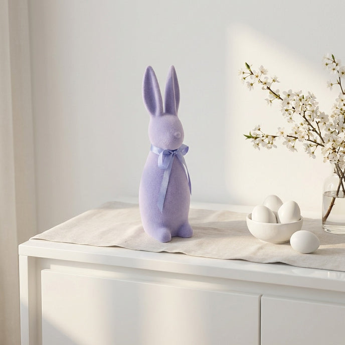Descoperă farmecul discret al acestui iepuraș din Colecția de Paște la Ornament24. Cu o siluetă alungită și o culoare mov liliac deosebită, această piesă aduce o notă de noblețe și liniște oricărui aranjament festiv, fiind un punct focal de neegalat.