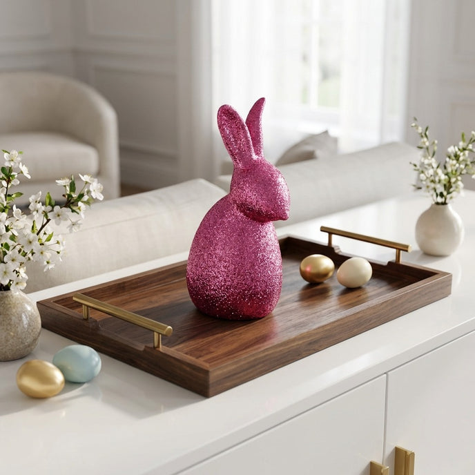 Ieși din tipare în acest sezon cu un decor care captează lumina și privirile tuturor. Iepurașul roz cu sclipici din Colecția Ornament24 aduce un aer modern și sofisticat aranjamentelor tale de Paște, fiind alegerea ideală pentru cei care își doresc un decor plin de personalitate și energie.