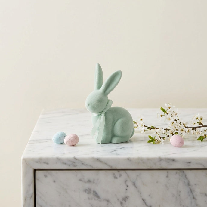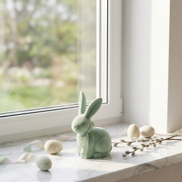 Îmbracă-ți locuința în culorile revigorante ale primăverii cu iepurașul decorativ din Colecția Ornament24. Într-o nuanță sofisticată de verde mentă și cu o textură deosebit de fină, acest ornament aduce un echilibru perfect între eleganța modernă și farmecul sărbătorilor pascale.