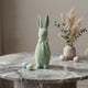 Redefinește estetica sărbătorilor de primăvară cu iepurașul decorativ cu siluetă zveltă din Colecția Ornament24. Într-o nuanță revigorantă de verde mentă pastel, această piesă îmbină liniile moderne cu o textură clasică luxuriantă, fiind accesoriul ideal pentru un interior stilat și luminos.