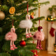 Adaugă o notă sofisticată bradului tău cu acest ornament decorativ flamingo vișiniu, o piesă plină de farmec și personalitate. Flamingoul este realizat din materiale fine, are o fustiță pufoasă din pene roz pal, o coroniță aurie strălucitoare și pantofiori din catifea roz, detalii care îl transformă într-o decorațiune deosebită și elegantă.