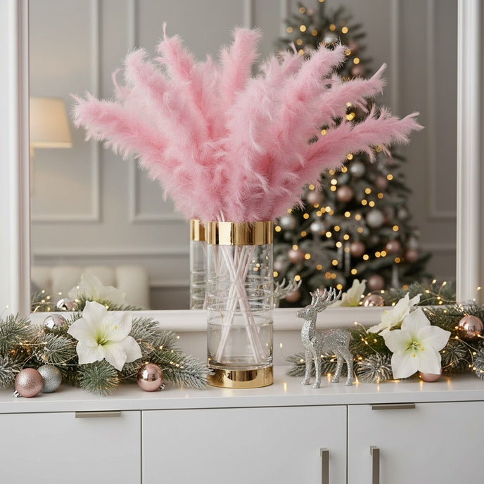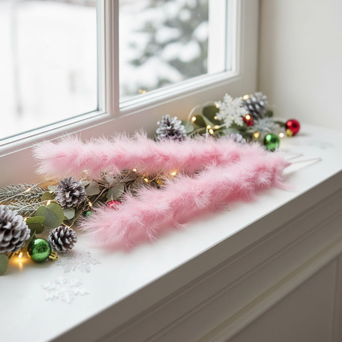 Realizată din pene moi, ramura are un aspect pufos și elegant, oferind volum și textură oricărui decor. Nuanța delicată de roz pastel creează un contrast rafinat în combinație cu decorațiuni aurii, argintii sau albe, fiind perfectă pentru decoruri moderne, romantice sau glam.