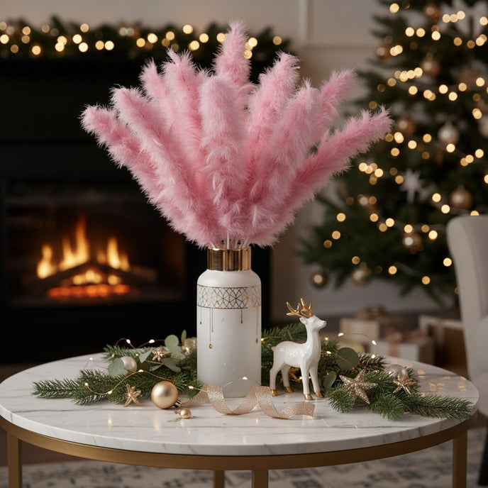 Adaugă o notă sofisticată decorului tău cu această ramură decorativă din pene roz, un accesoriu versatil potrivit pentru Crăciun, aranjamente de masă, vaze decorative sau evenimente speciale.