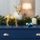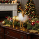 Confecționat din polirășină de înaltă calitate cu finisaj metalic auriu, renul are o textură realistă, iar penele albe adaugă contrast și delicatețe.