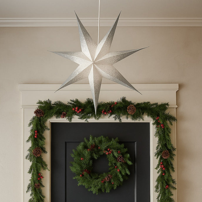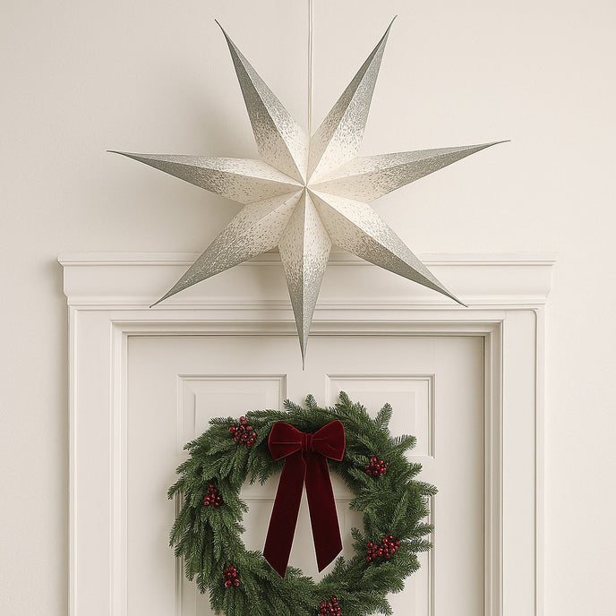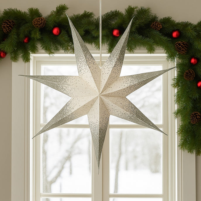 Completează decorul festiv al casei tale cu această stea decorativă alb-argintie cu 7 colțuri, un ornament spectaculos care aduce o notă de eleganță și lumină naturală în orice încăpere. Realizată din hârtie decorativă de calitate, steaua se remarcă prin combinația rafinată de alb imaculat și accente argintii sclipitoare, creând un efect vizual cald și sofisticat.